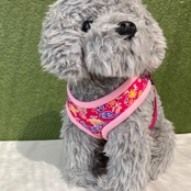 沖縄の伝統模様びんがた(紅型)柄の、華やかな小型犬用ソフトハーネスです。明るい色合いが、お散歩をもっと楽しくしてくれます!